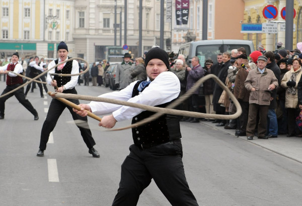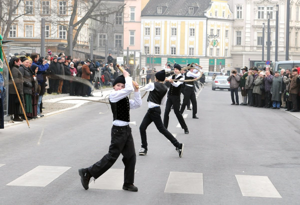 Männer vom Trachtenverein Altstädter Bauerngmoa beim Aperschnalzen in Linz. Foto/Linz09 Männer vom Trachtenverein Altstädter Bauerngmoa beim Aperschnalzen in Linz. Foto/Linz09 |